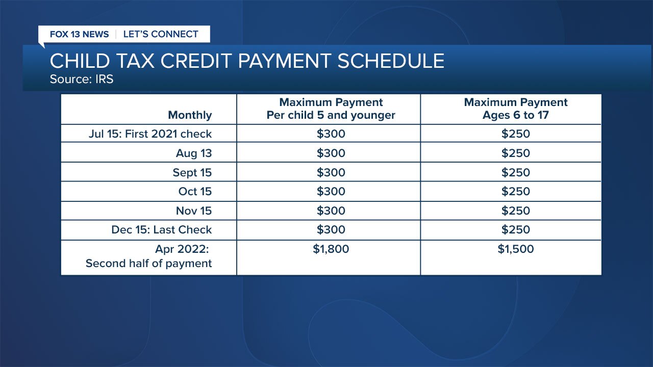 Families who sign up will normally receive half of their total child tax credit on december 15, according to the irs. The payment is $250 for a child from 6 years old to 17 years old or $300 for a child under 6. Parents will receive half their credit on a monthly basis through the rest of the year.